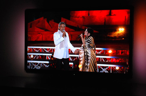 O grande cantor Italiano, som uma sobriedade notável, fez alguns duetos fantásticos com vozes femininas como Heather Headlet, Elisa, Laura Pausini e, claro, Sarah Brightman, com a qual cantou “épico” o tema final Time do Say Goodbye. Com Laura Pausini aconteceum um dos momentos mais belos do concerto quando Bocceli, numa humildade notável, se ajoelha perante a artista ialiana quando esta arrebata
