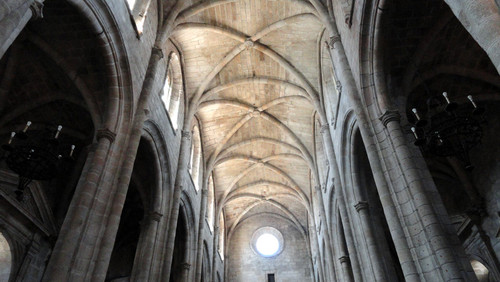 Deste monumento nacional, do século XIV, situado junto à estátua do rei D. Sancho I, sobressaem muitos pormenores arquitetónicos de inegável relevância, nomeadamente as influências românicas, góticas e manuelinas, que justificam demorada visita.