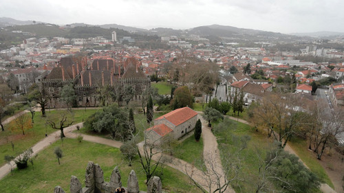 Muitos anos depois, subi à torre de menagem do imponente Castelo de Guimarães e da lá captei esta imagem da Colina Sagrada, com a capela onde terá sido batizado D. Afonso Henriques, no início do século XII, o lindíssimo Paço dos Duques e a cidade-berço, Património Mundial, no horizonte. Para quem nunca subiu à torre, recomendo vivamente. É uma experiência que merece ser vivenciada.