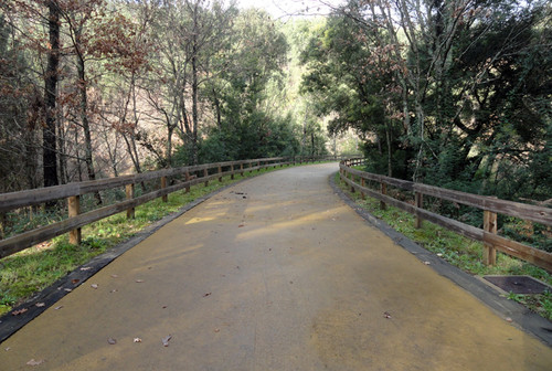 O piso da pista é agradável aos pés, impelindo-nos para caminhar cada vez mais, distraídos pelos bosques que brotam verdes luxuriantes e aromas de mil sensações, só perturbados pelo chilrear da passarada que chama a primavera. E quando ela despontar, então há de explodir com a paleta das cores das flores e os verdes viçosos que cobrem as encomiadas da serrania. E pelo meio, haveremos de atravessar uma ponte de granito sobre uma ribeira e mergulhar num túnel que ostenta o engenho e arte de quem, no início do século, construiu a linha férrea do Tâmega.