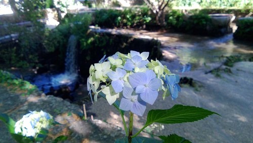 E nesta altura do ano sobressaem por lá, nas margem do pequeno rio, as hortências, flores que adoro observar e que me fazem lembrar as lindíssimas ilhas do Açores.